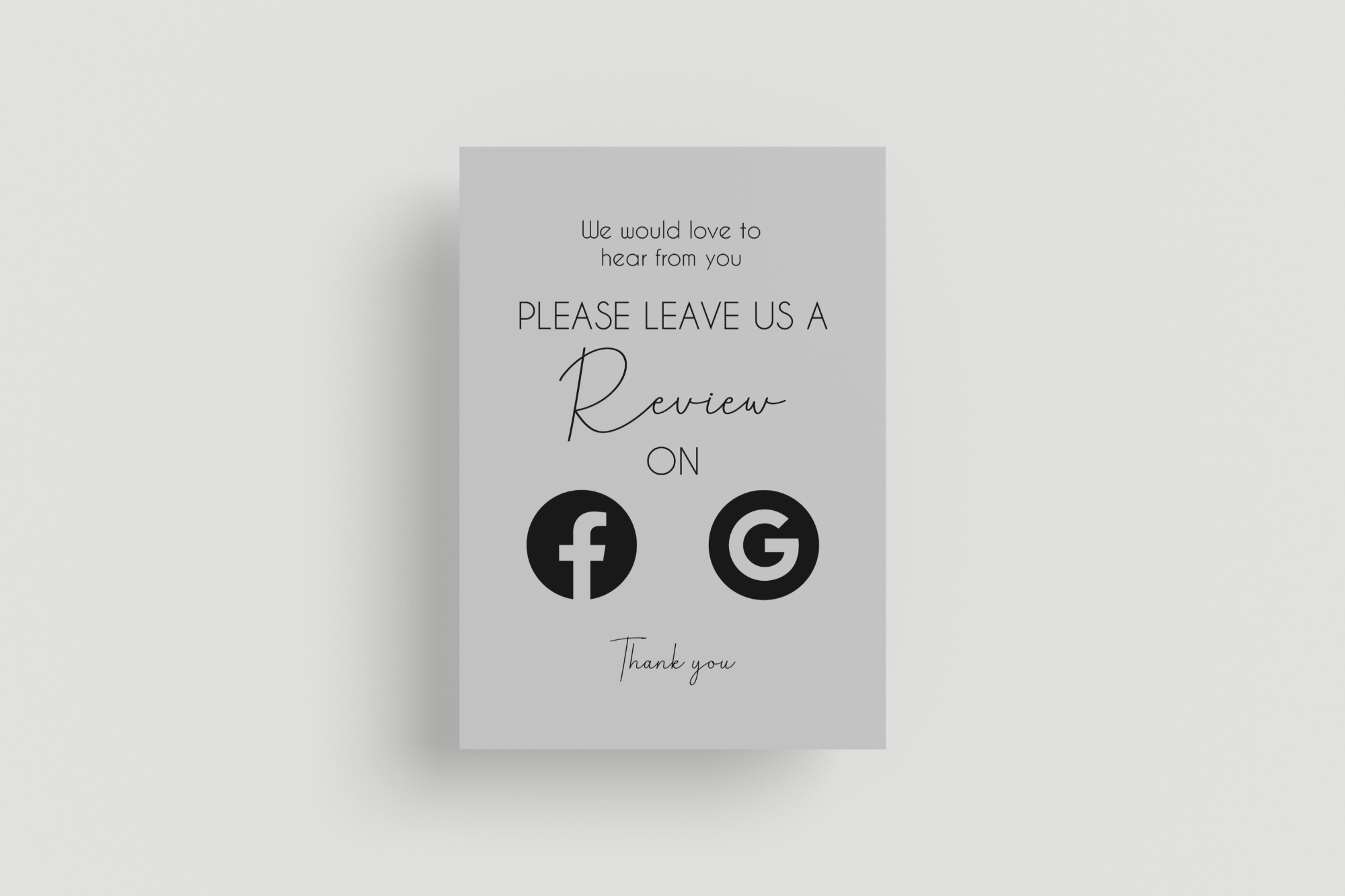 Do you find it difficult to ask for reviews? Have this convenient eye catching review sign on your desk and watch them reviews come flying in.